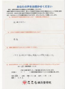 このように改善してきたのは、H・T様が私と一緒にまじめに治療と自宅での運動に取り組んでくださったからです。