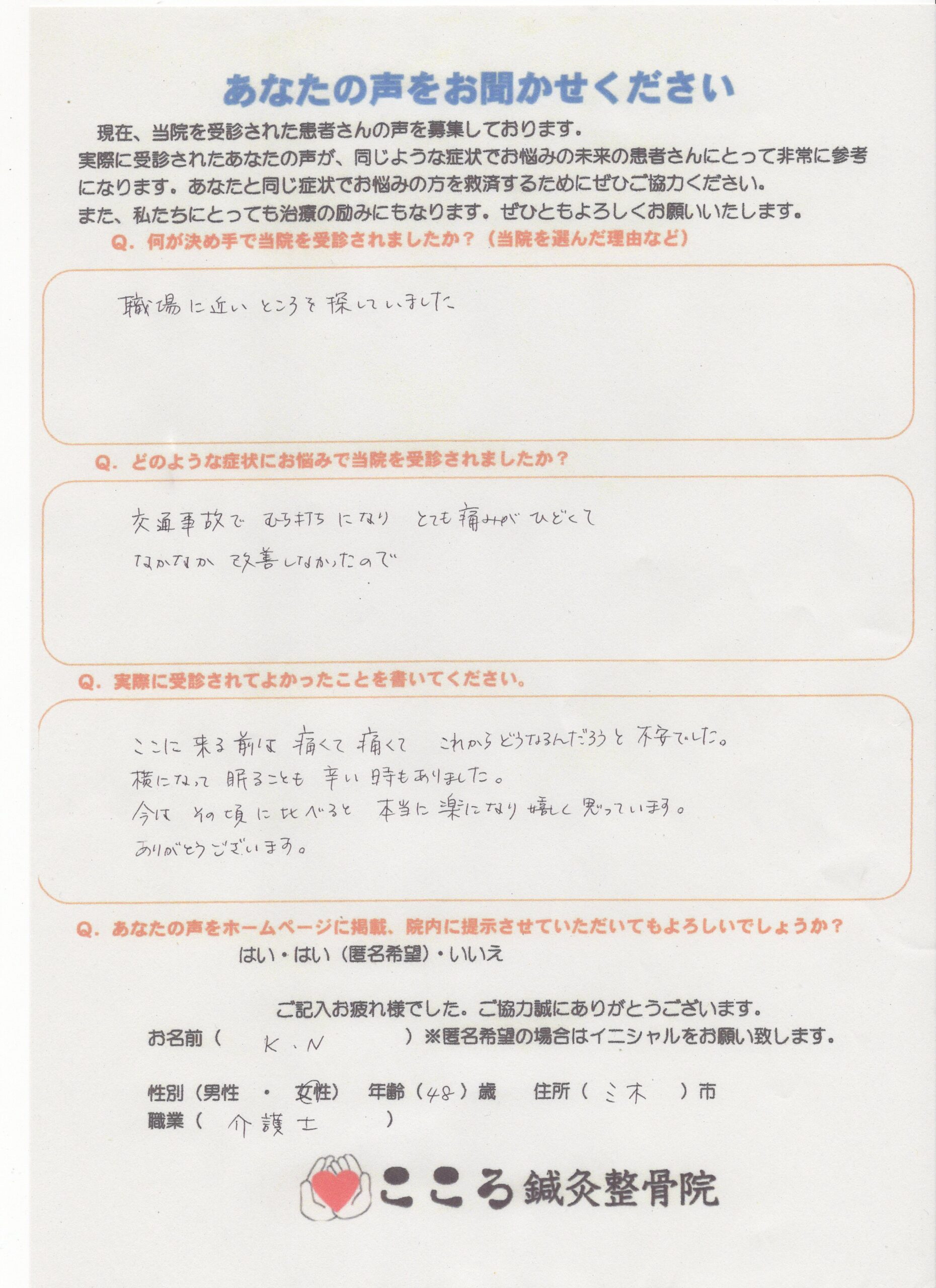 【患者さんの声】首の痛みで横になるのも辛かったのですが、楽になり嬉しく思います! »