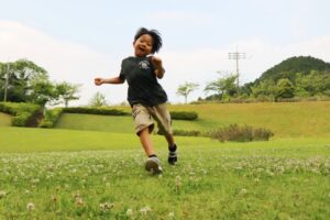 ・公園で鬼ごっこ(いろんな方向に走ることで脚の筋肉がバランスよく使われます)